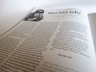 Neben Kurzmeldungen, Buch-, Film- oder Ausstellungstipps ist das Heft noch gefüllt mit einem Interview mit dem Kölner Domprobst Norbert Feldhoff, der Auskunft über die Schwierigkeiten und Herausforderungen der Instandhaltung der Kölner Doms gibt – auch hier gilt: Vieles hat man sich wahrscheinlich bereits gedacht, aber es ist noch etwas anderes, es sich vor Augen führen zu lassen. Das Heiligenquiz lädt aktiv zum Nachdenken ein; einschränkend möchte ich aber bemerken, dass der Text für denjenigen, der ein wenig kirchengeschichtlich bewandert ist, schon zu viele Informationen preisgibt – die Lösung ist also (in dieser Ausgabe) ziemlich leicht zu erraten.