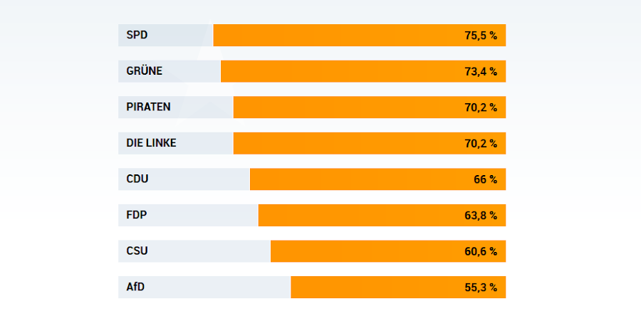 Um euch den Beginn zu erleichtern, möchte ich euch mein eigenes Wahl-O-Mat-Ergebnis präsentieren, das, zugegeben, tatsächlich ziemlich meiner persönlichen politischen Tendenz entspricht: