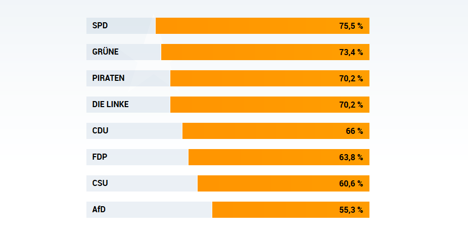 Um euch den Beginn zu erleichtern, möchte ich euch mein eigenes Wahl-O-Mat-Ergebnis präsentieren, das, zugegeben, tatsächlich ziemlich meiner persönlichen politischen Tendenz entspricht: